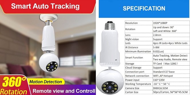 Bulb-Base Wireless Auto Tracking PTZ Security Camera